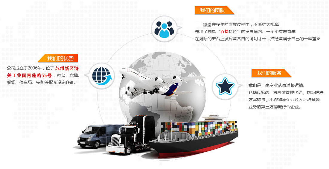 公司坚持以“客户为中心”的服务理念,坚持以“准确及时”为服务目标,业务配送以长三角为中心,借助自身货运专线辐射及东南亚等国陆路运输。公司始终奉行“厚德载物、互利双赢、信得唯命”的企业宗旨,全力跟随客户要求,不断进行服务升级。
